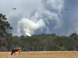 And this is a picture of the DC-10 that they brought in from California. They didn't actually use it here (so this picture is not from Bastrop) because there were too many firefighters and stuff in the area. They can't drop that stuff when anyone is down there. (Rightly so, that was my other comment on this thing, doesn't that fire retardant stuff look evil?) I mean, pretty soon, you start being more afraid of that than the actual fire. Or maybe not, but it does add to the drama.